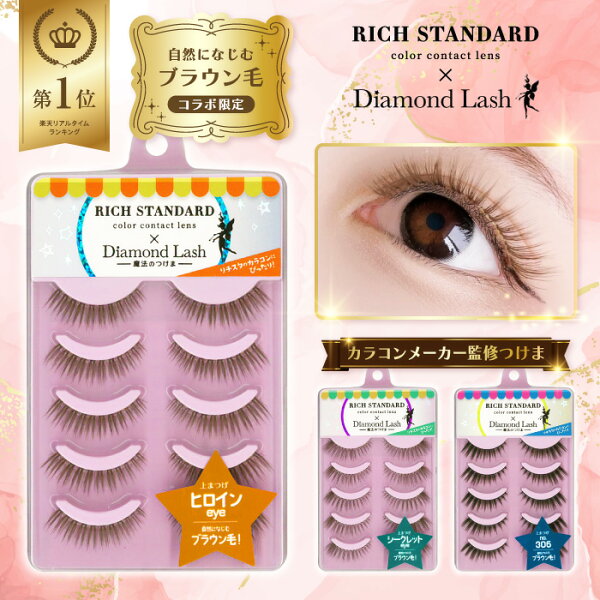 【楽天ランキング1位】\カラコンメーカー監修つけま/ リッチスタンダード × ダイヤモンドラッシュ ブラウンシリーズ [ヒロインeye / シークレットeye / no.306] 5ペア入り / 魔法のつけま つけまつげ つけまつ毛 つけま ナチュラル マツエク 束感 ブラウン毛 茶色 カラー
