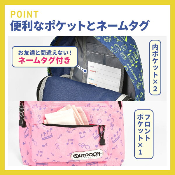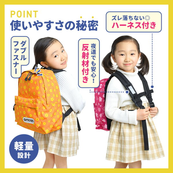 【特典あり】リュック キッズ OUTDOOR PRODUCTS アウトドアプロダクツ 女の子 男の子 小学生 幼稚園 保育園 289 11L ハーネス付き 軽量 キッズリュック リュックサック ブランド 子供 通園 通学 遠足 学童 低学年 カラフル 電車 柄 黒 星 ピンク ジュニア かわいい おしゃれ