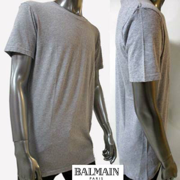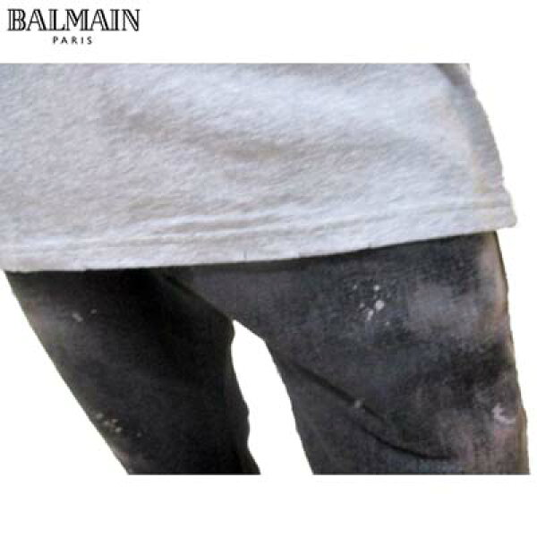 バルマン BALMAIN メンズ トップス Tシャツ ※色違い(白/黒)も有り 半袖 袖/襟/裾まわりダメージ加工・ラウンドネックTシャツ グレー J607 C135 197 (R13800/R39800)【送料無料】【smtb-tk】 13S