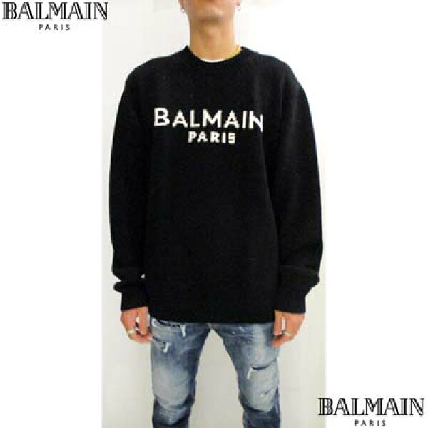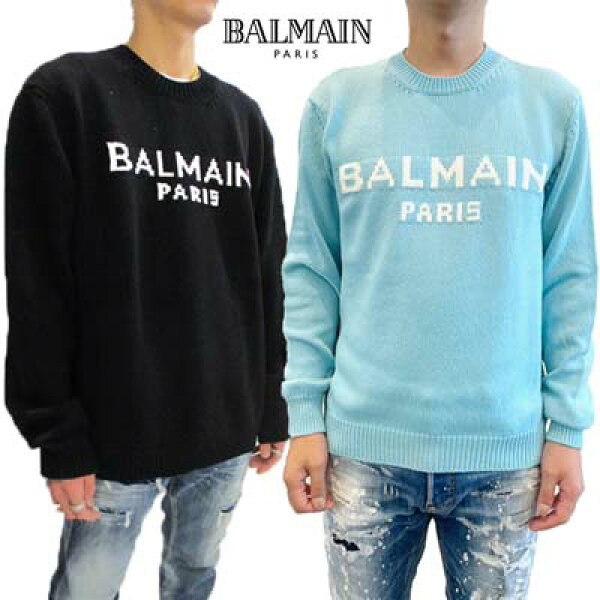 バルマン BALMAIN セーター ニット メンズ トップス 2色展開 フロントホワイトブランドロゴ入りウールセーター スカイブルー ライトブルー/ブラック DH1KD000 KG97 SNC/EAB (R165000) 422 2024年秋冬新作 【送料無料】 【smtb-TK】