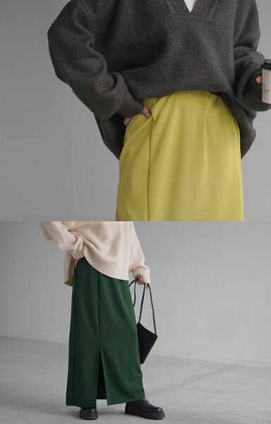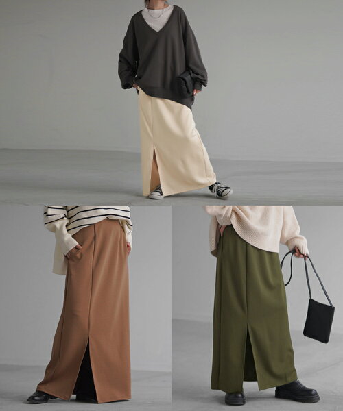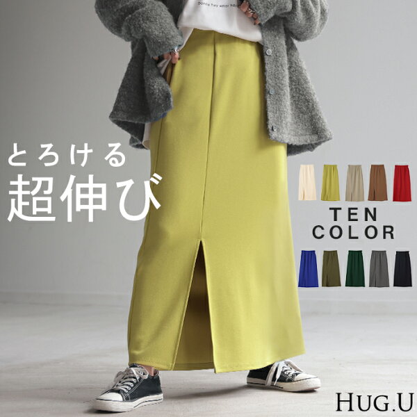 スカート 超伸び タイトスカート レディース ボトムス ポンチスカート ロングスカート マキシスカート ジャージー ストレート ペンシルスカート スリット ストレッチ ロング タイト ナロースカート きれいめ ゴム グリーン 秋 冬 HUG.U