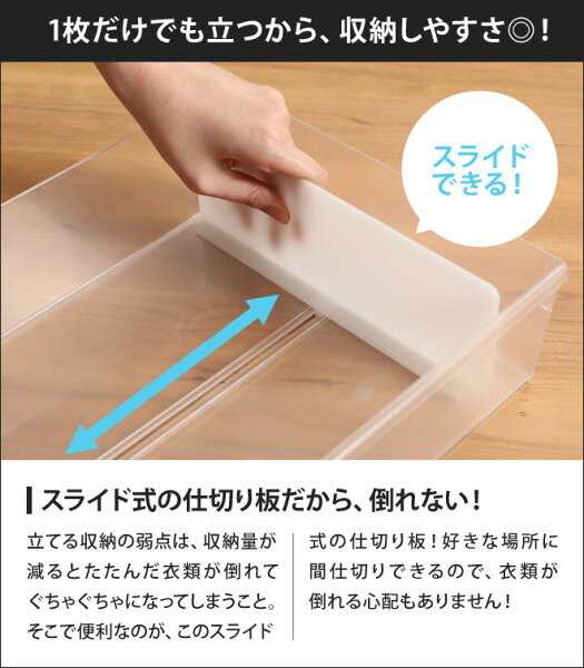 Tシャツやインナーウェアをスッキリ収める上に、1枚だけでも立たせることができます。