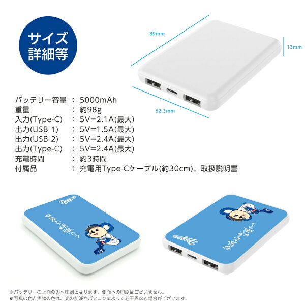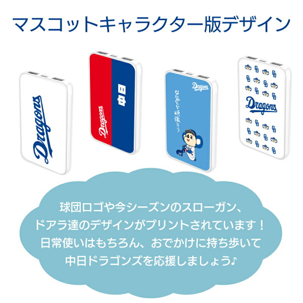中日ドラゴンズ承認 モバイルバッテリー 5000mAh マスコットキャラクターコラボ ドアラ ドラゴンズ坊や 全12種 応援グッズ バッテリー ポケットサイズ 小型 持ち運び 軽量 3台同時充電可能 2025年【PSE認証済】