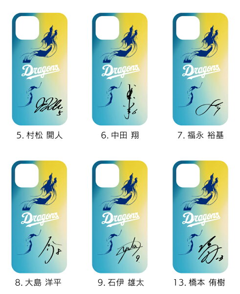 中日ドラゴンズ承認 ケース サインデザイン 龍 選手コラボ 背番号 00~19番 iphone16 iphone15 iphone14 iphone13 各種 iphoneケース アイフォンケース