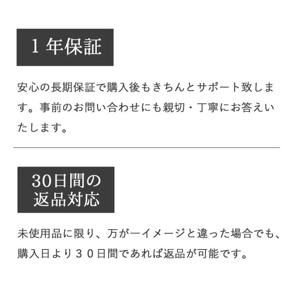 ポイント5【 安心の1年保証&30日間返品保証付き 】