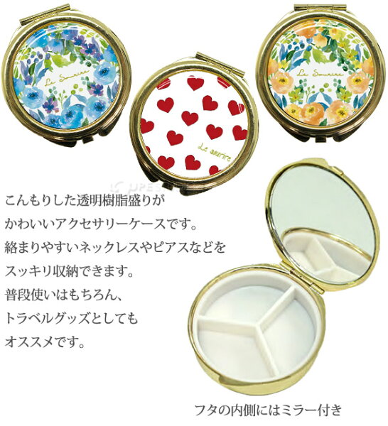 ルソイーユ ミラー アクセサリーケース ピルケース ラウンド かわいい おしゃれ アクセサリー ケース ミラー 鏡 クリスマスプレゼント クリスマス