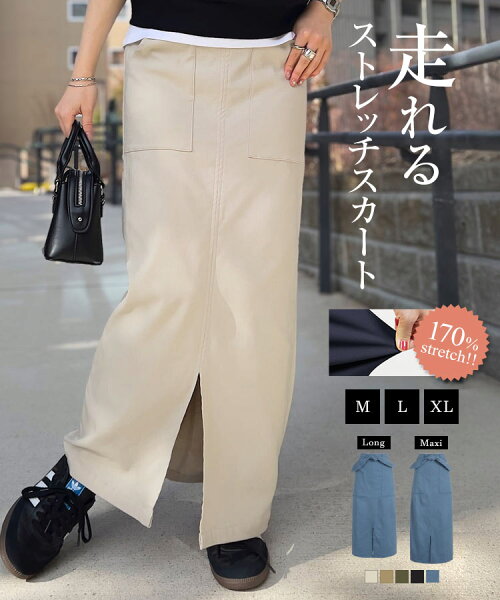 ≪12/24 24Hセール2290円 送料無料≫ タイトスカート ロング ストレッチ レディース [ M L XL 丈が選べる ] 秋 秋冬 スカート ボトムス ロングスカート マキシスカート マキシ丈 膝下 ペンシルスカート 伸びる ウエストゴム ポケット 楽ちん 高身長 [M2394]【送料無料】
