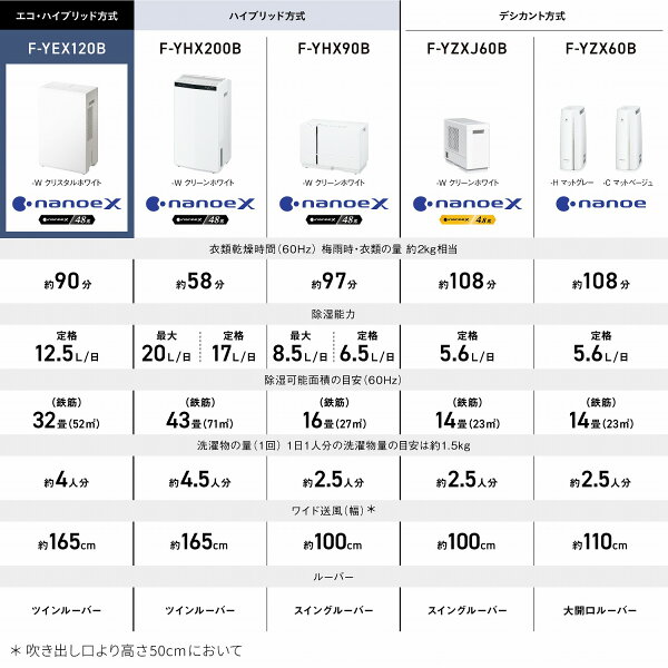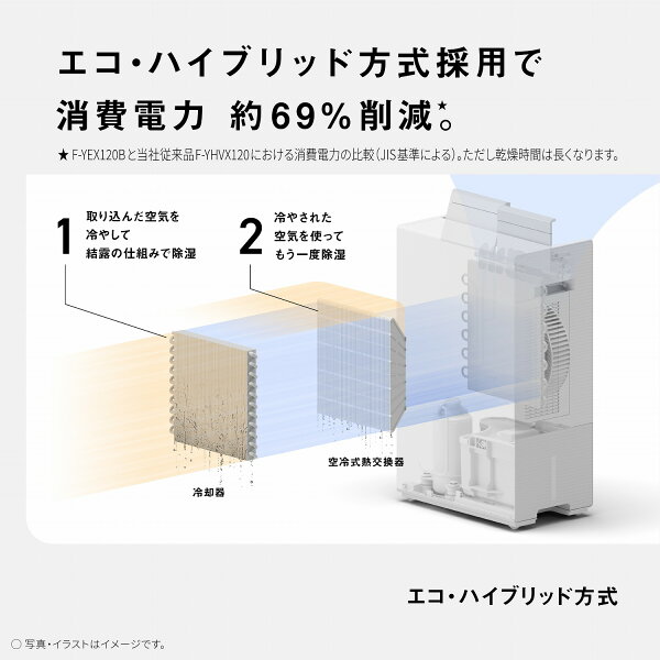 ★:F-YEX120Bとパナソニック従来品F-YHVX120における消費電力の比較(JIS基準による)。ただし乾燥時間は長くなります。