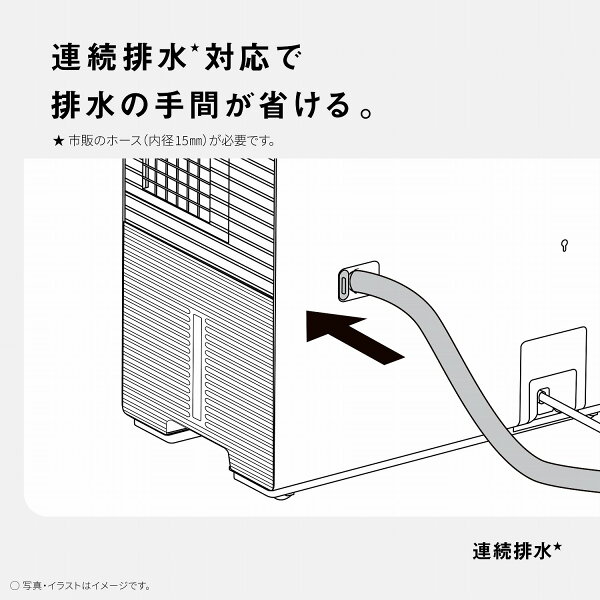 タンクに市販のホースをつないで、水を捨てるタイミングを気にせず長時間使えます。