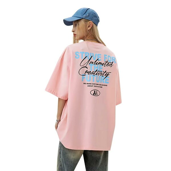 【送料無料】[uptoyou] 夏服 tシャツ メンズ 半袖 五分袖 ゆったり 大きいサイズ 男女兼用 ティーシャツ 文字プリント カットソー 綿100 柔らかい 大きい おしゃれ かっこいい ストリート系 色:#53:ピンク、サイズ:L