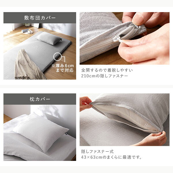 敷布団カバー:210cm隠しファスナー、先染め洗いざらし