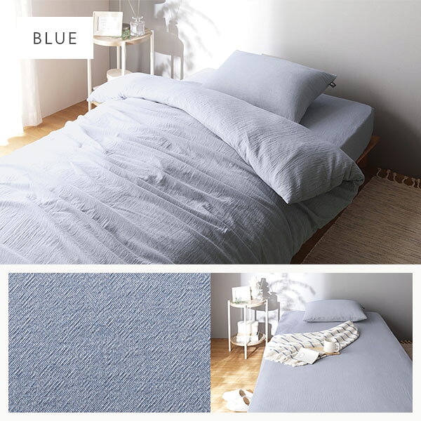 ボックスシーツ:全周ゴム付き、先染め洗いざらし