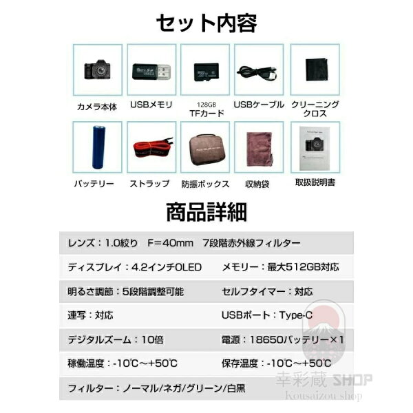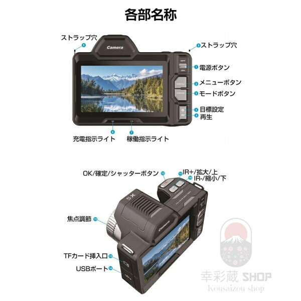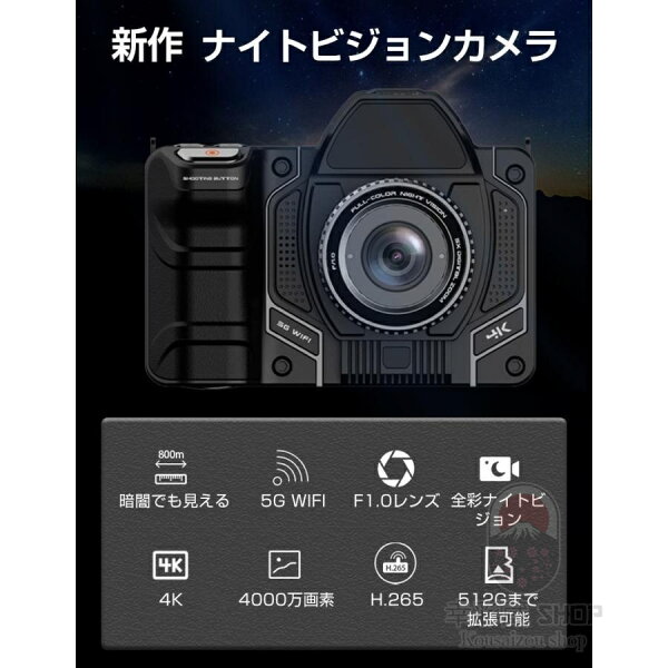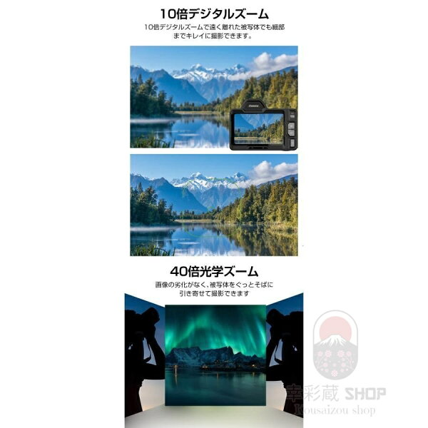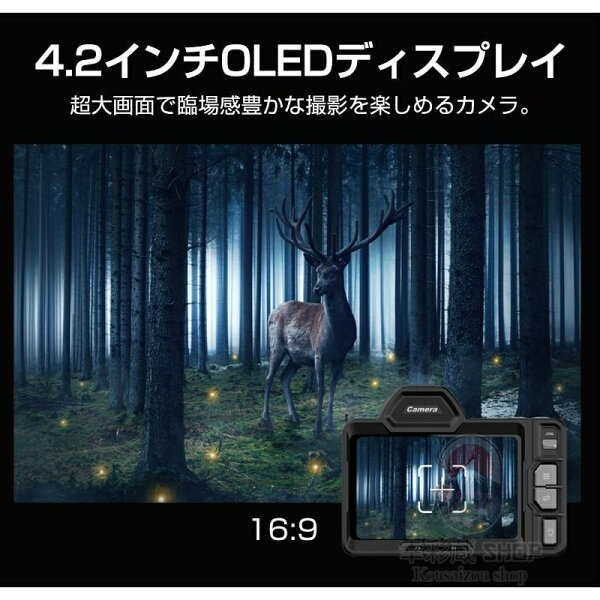 デジタルカメラ 4K 4800万画素 ナイトビジョン搭載 40倍光学ズーム+10倍デジタル拡張 昼夜兼用 赤外線夜視カメラ WiFi/手ブレ補正 4.2型タッチスクリーン 超コンパクト 野生動物観察 キャンプ 防犯 救助活動 ハンティング対応 高感光 オートフォーカス 誕生日プレゼント