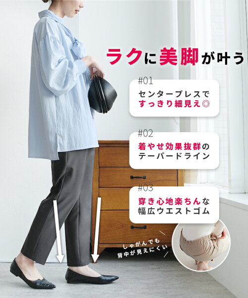美脚センタープレステーパードパンツ(bel-hr-0501) レディース ボトムス パンツ テーパード センタープレス ウエストゴム シンプル オケージョン S/M/L/XL reca レカ ネコポス発送10 k