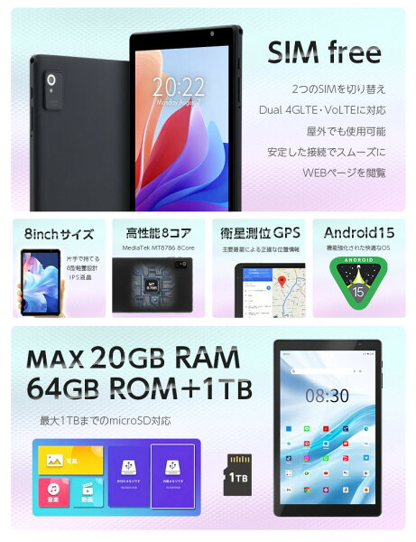 【売上No.1】 SIMフリー 8インチ【特別セット★】片手サイズ Android15 タブレット GPS 搭載 SIMモデル/Wi-Fiモデル Widevine 対応 IPSディスプレイ搭載 子供 学習にもおすすめ!サブ機 クリスマス プレゼント タブレットPC ブラック S8Pro 本体 ZTL