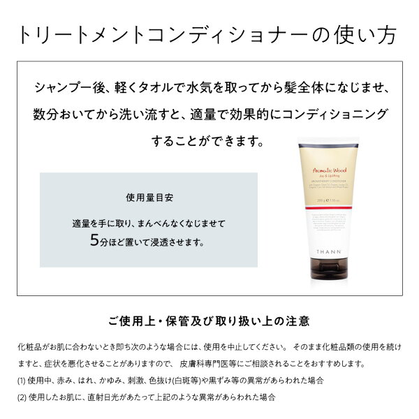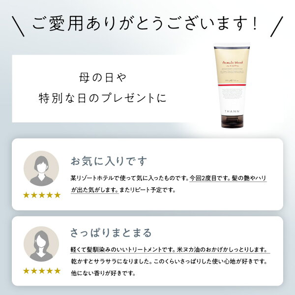 【高評価4.7以上】【THANN/タン 公式】トリートメントコンディショナー AW 《アロマティックウッド》タイ ナチュラル ヘアケア コメヌカ油 しなやか ふんわり ハリコシ プチ ギフト 誕生日 プレゼント 女性 女友達 クリスマス バレンタイン 母の日