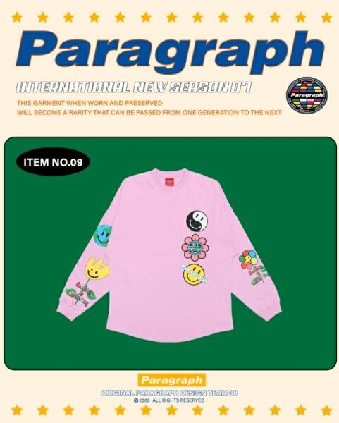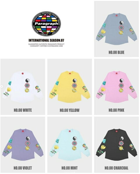 Paragraph パラグラフ ロングスリーブTシャツ Flower smile Long sleeve t-shirt (PARAGRAPH-NO.09) 韓国 ストリート レディース メンズ 送料無料 Tシャツ 20代 30代 コットン 長袖 クルーネック キャンセル不可