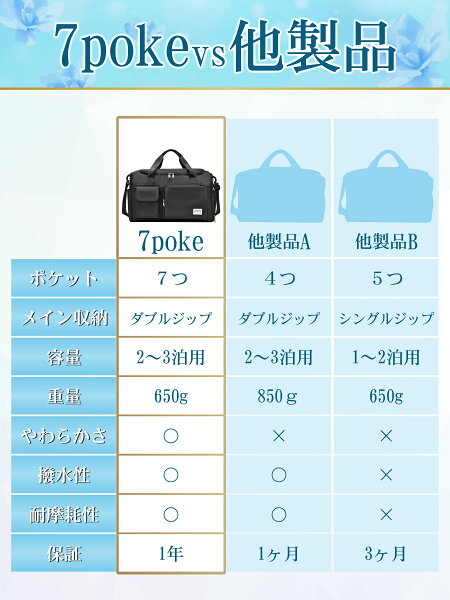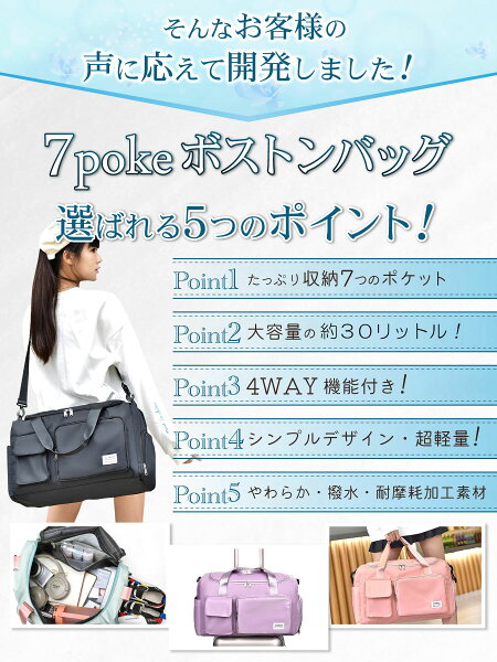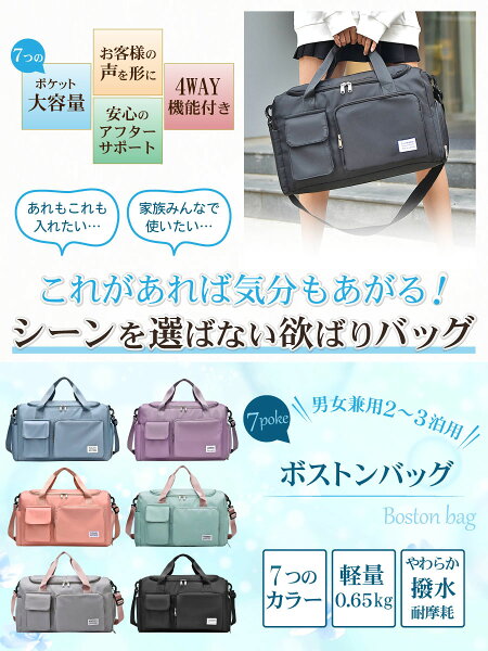 \25日はポイント3倍!/【専門家推薦☆強度試験済】7poke ボストンバッグ 旅行バッグ スポーツバッグ 折りたたみ 軽量 シューズ収納 修学旅行 メンズ レディース 大容量 トラベルバッグ ボストンバック 旅行カバン ジムバッグ スポーツバック 小学生 子供