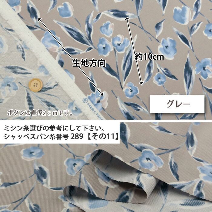 Elegant シャツコール生地(コーデュロイ生地) ( 秋冬 ワンピース バッグ スカート 花柄 フラワー 布地 ) 50cm単位