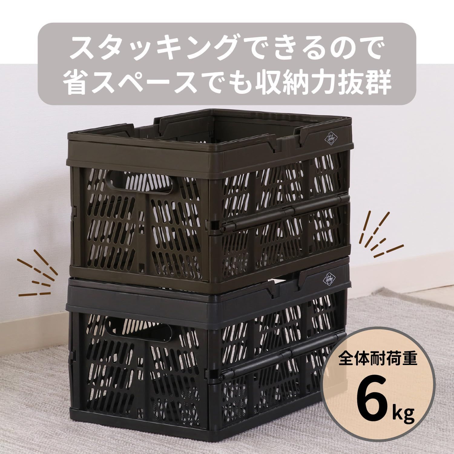 カーキ 折りたたみコンテナ Mサイズ 不二貿易 69003