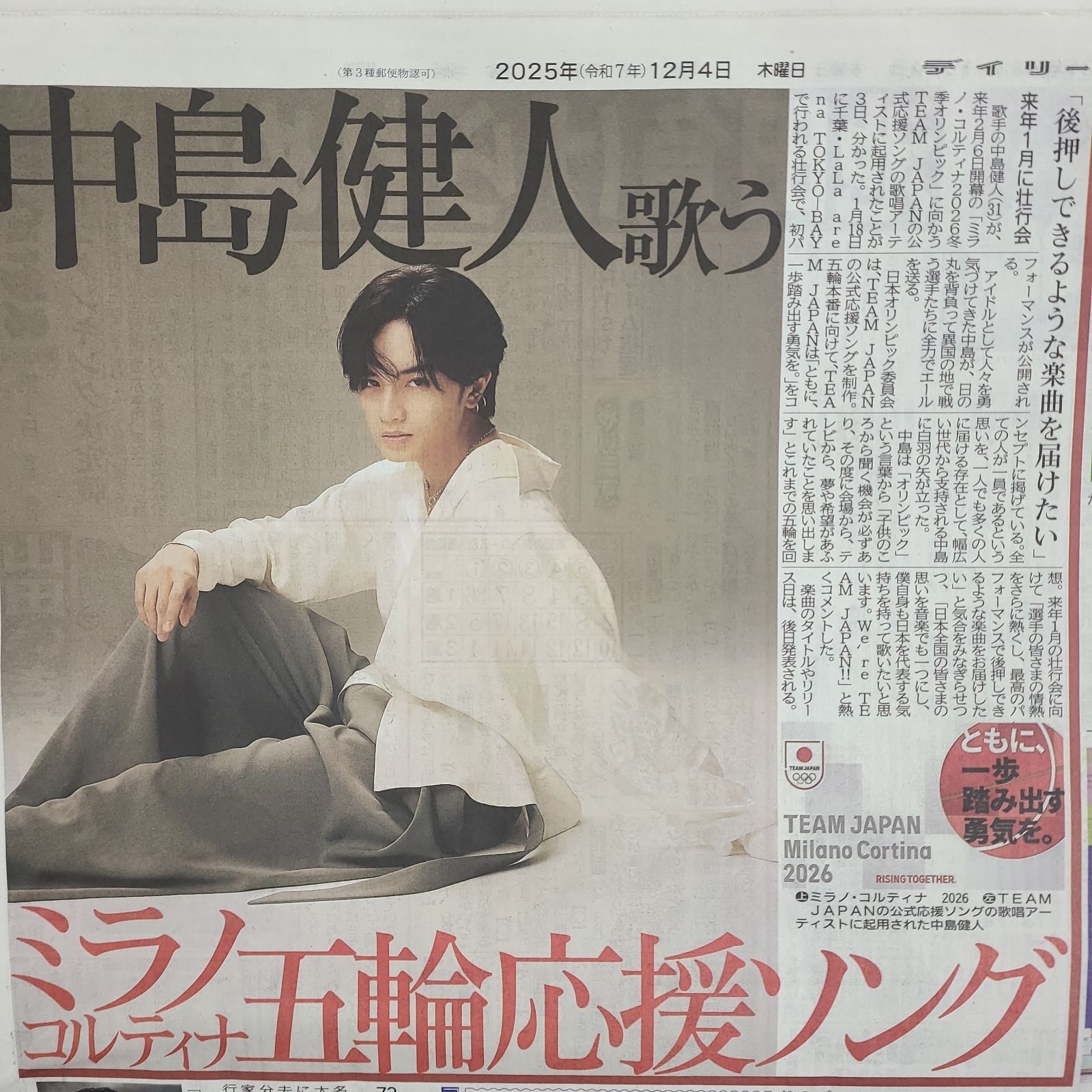☆ 中島健人 オリンピック 応援ソング 歌唱!