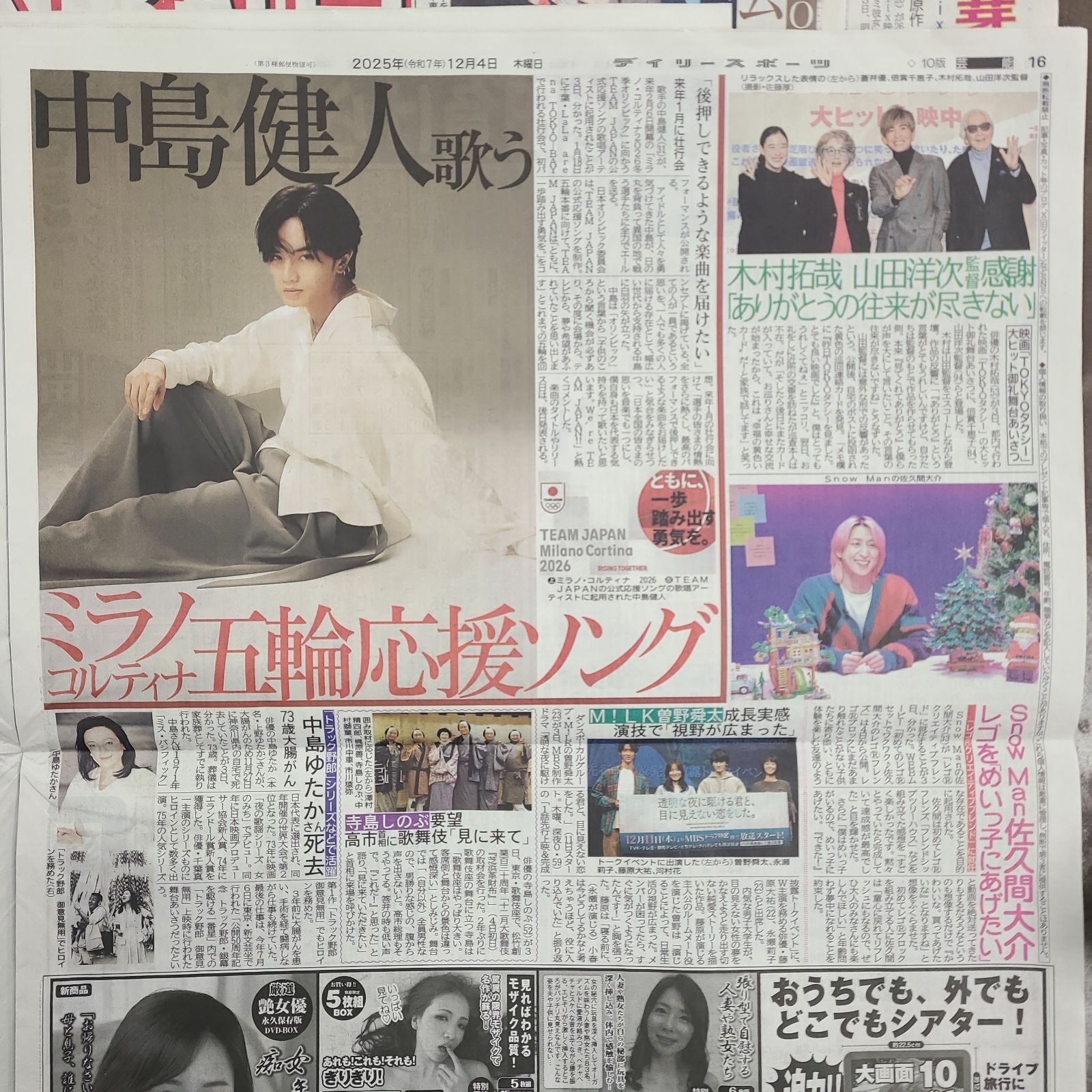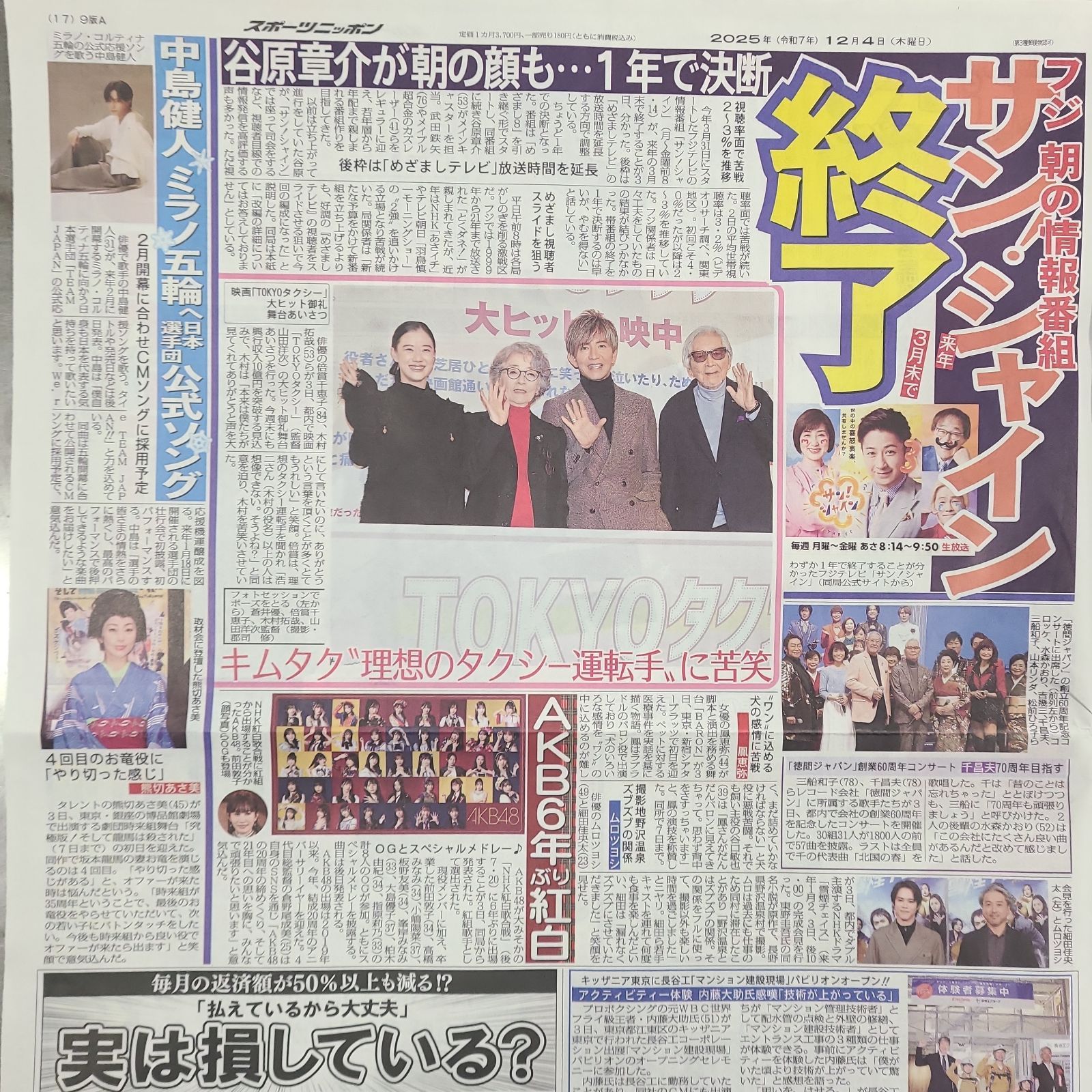 匿名配送!送料込み! 12月4日 朝刊