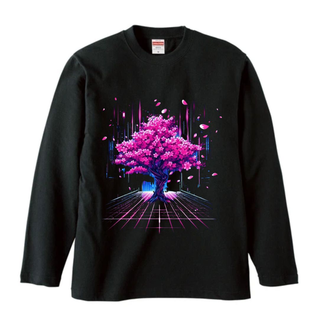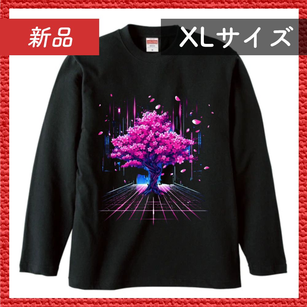 🔴新品未使用🔴 ロングスリーブ Tシャツ 桜 黒 ロンT 前 XLサイズ