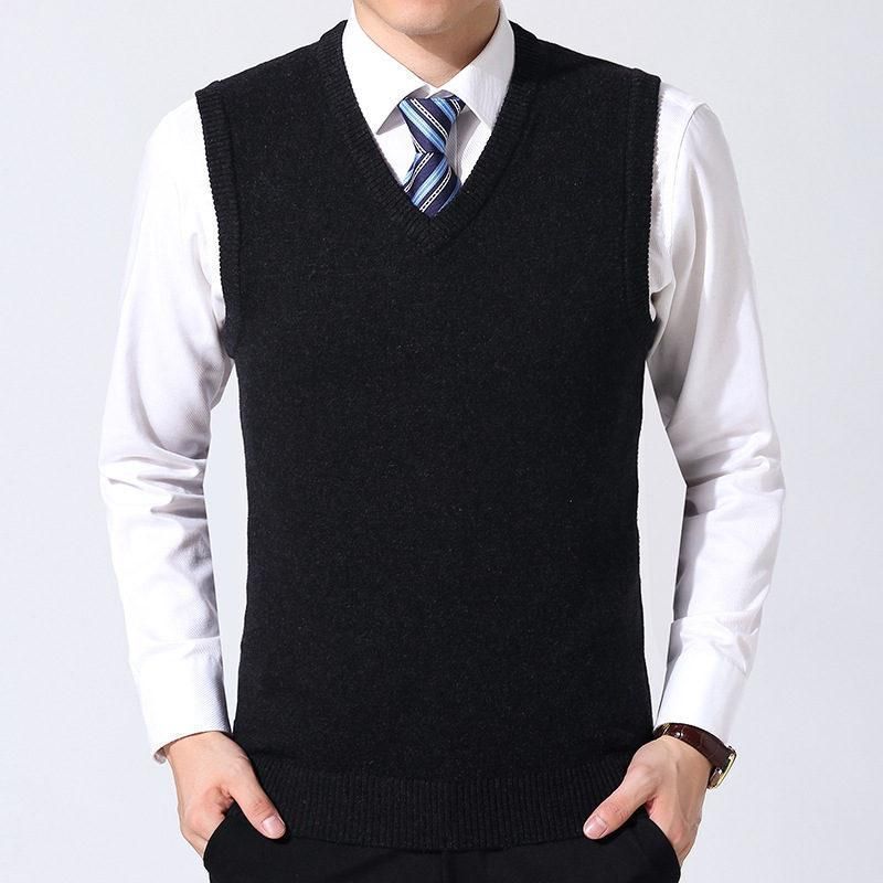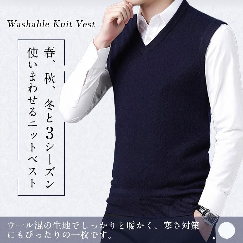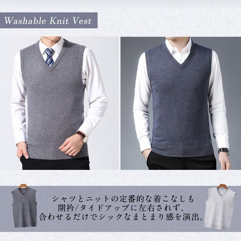 全新品 ニットベスト メンズ ジレ プルオーバー 春秋冬 チョッキ 暖かい Vネック トップス 保温 ビジネス 重ね着XZ0524