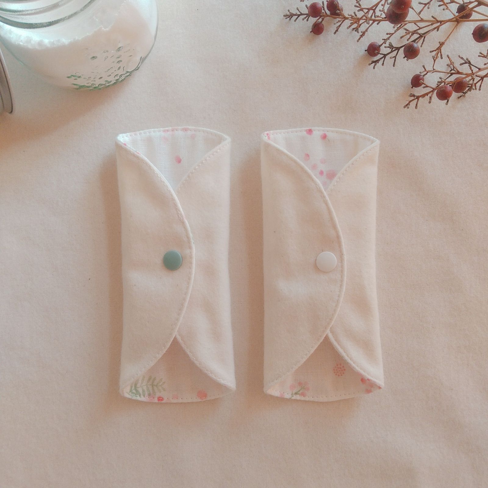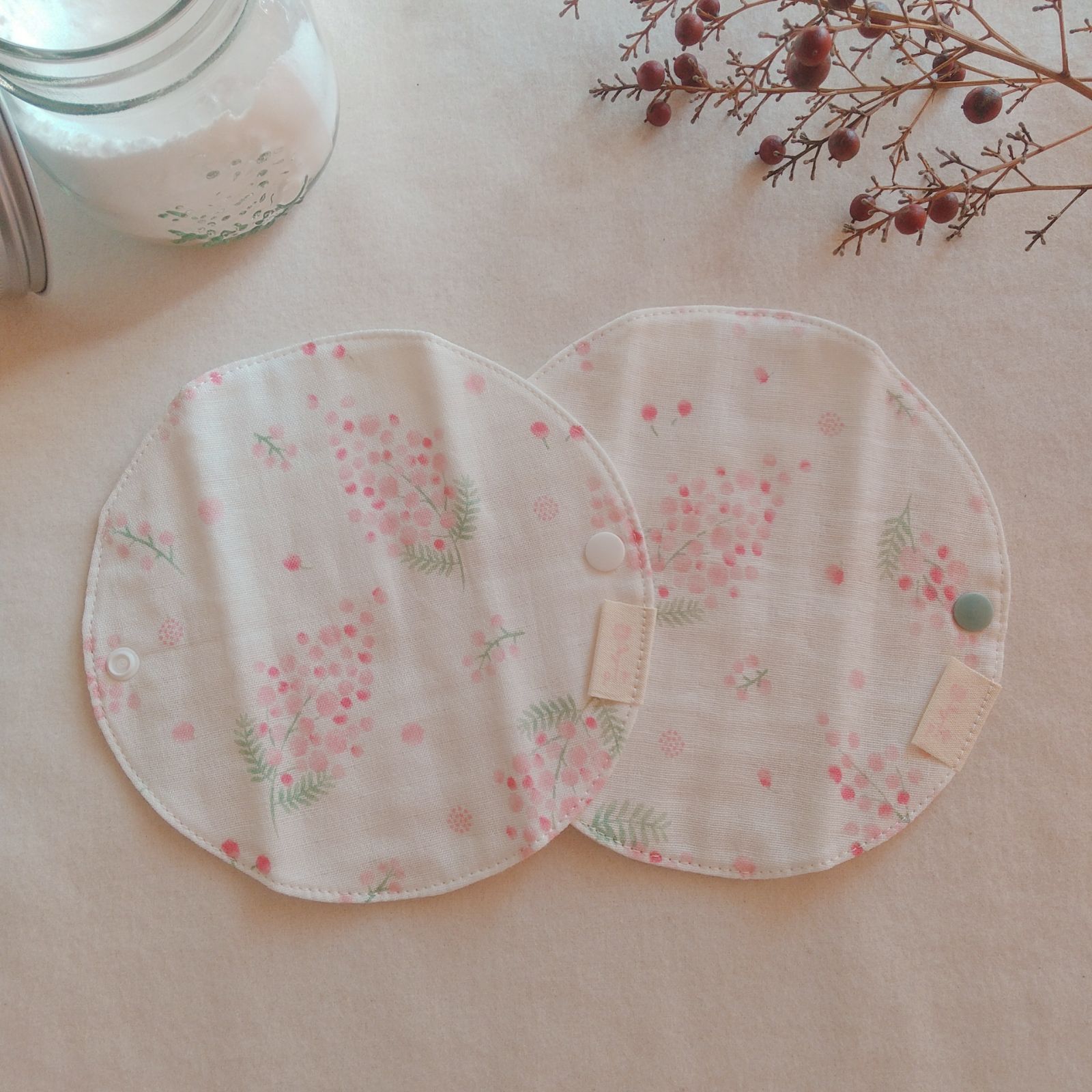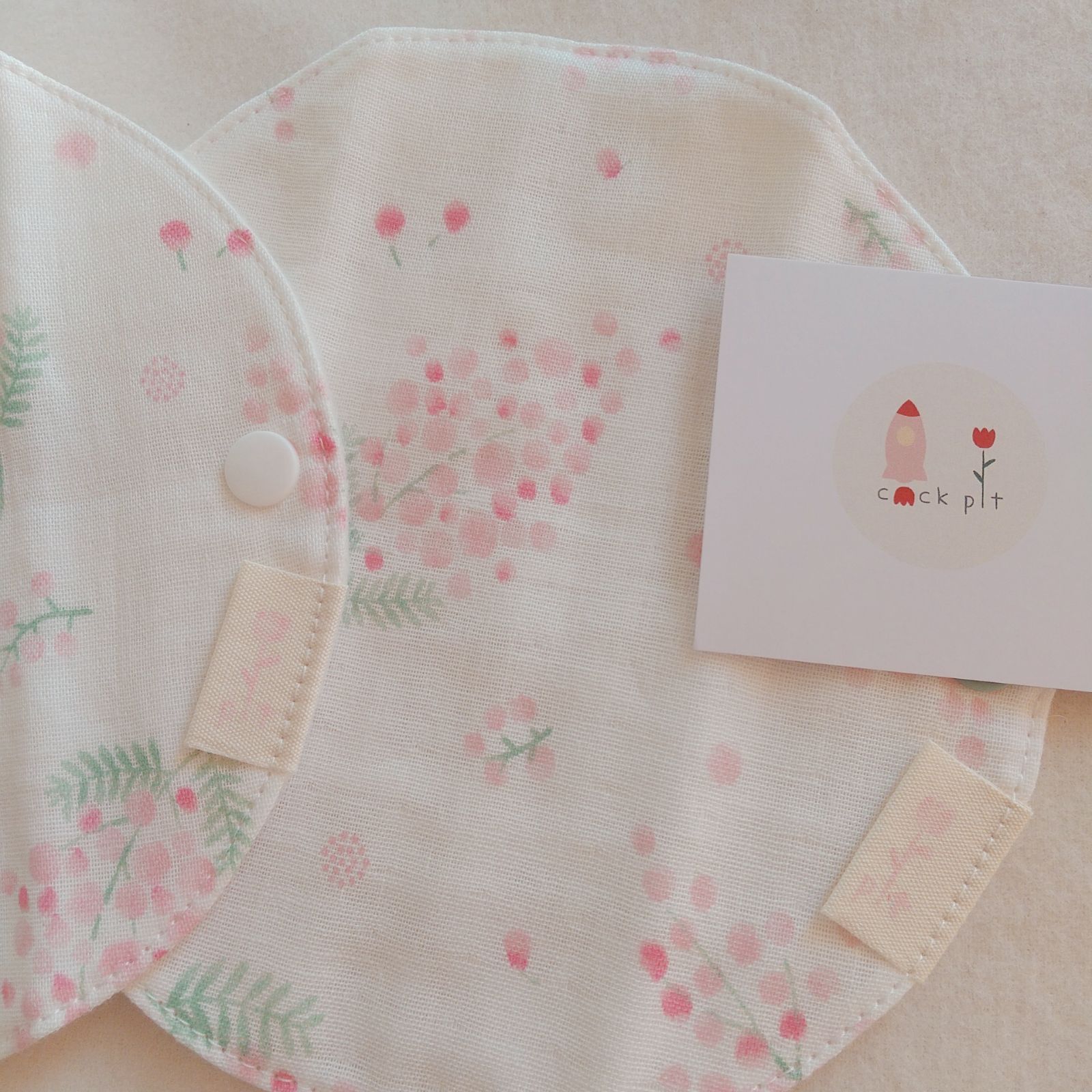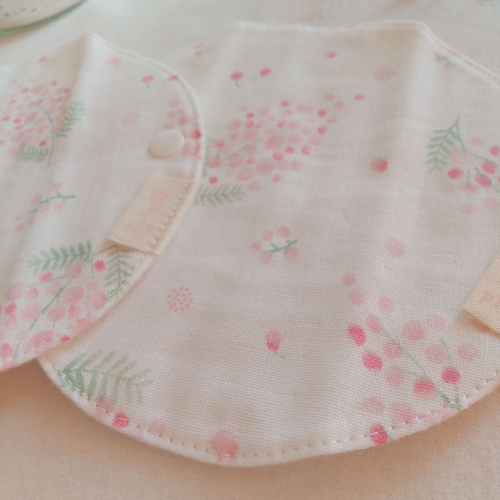 【布ライナー】無添加ネルとWガーゼ 淡いピンクの花柄 15cm 2層仕立て 2枚