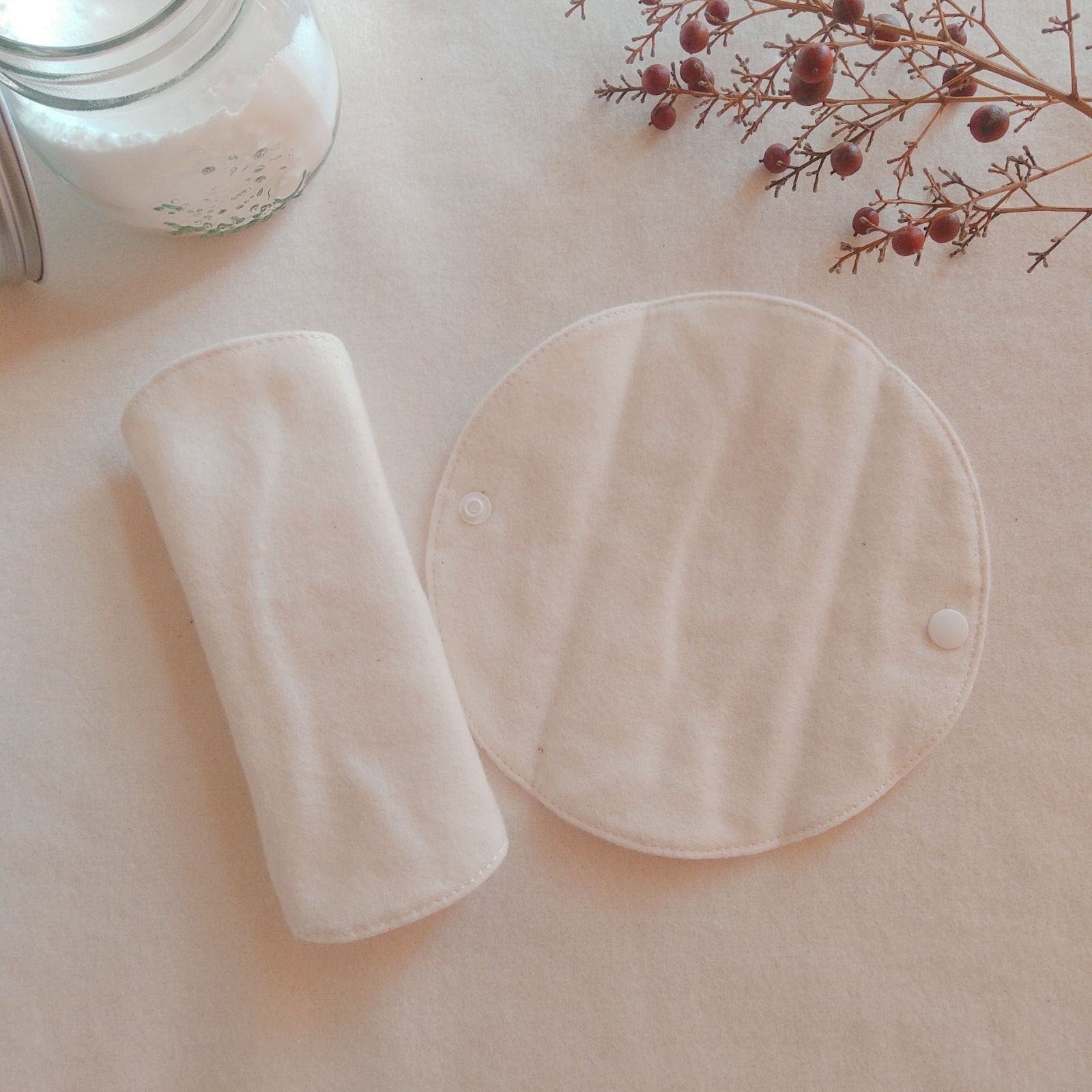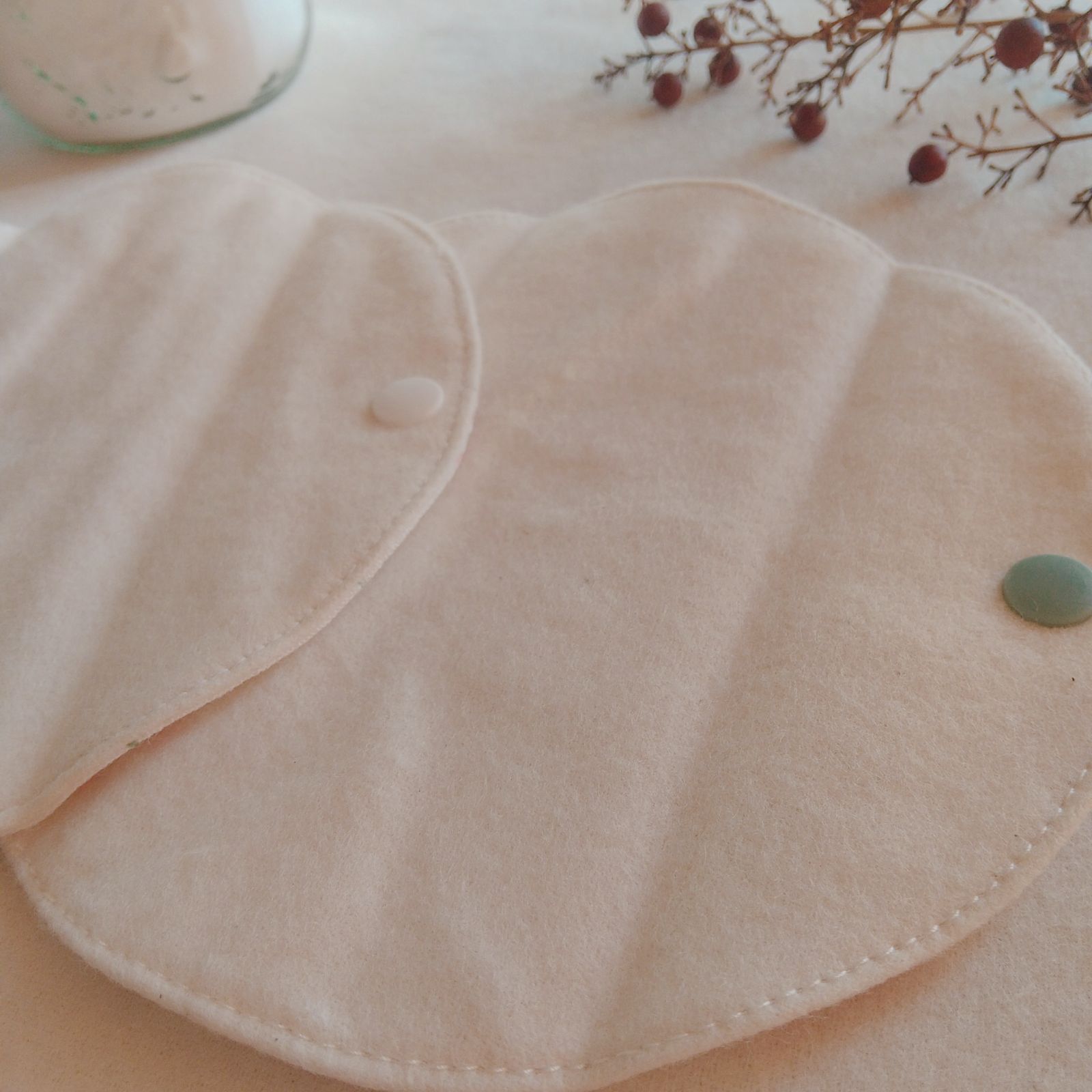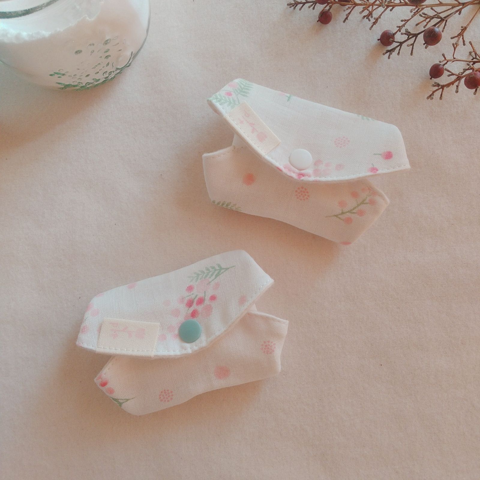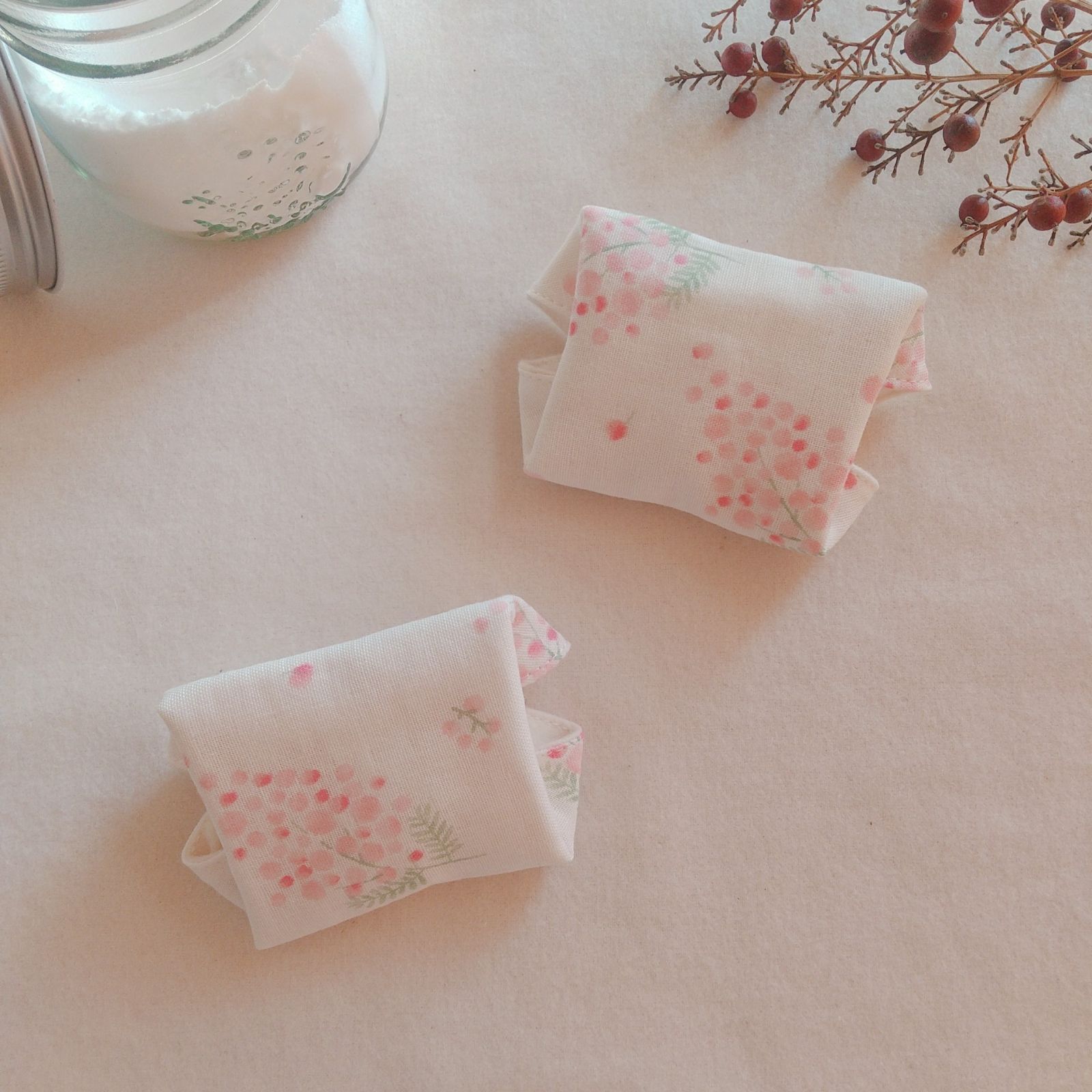 【布ライナー】無添加ネルとWガーゼ 淡いピンクの花柄 15cm 2層仕立て 2枚