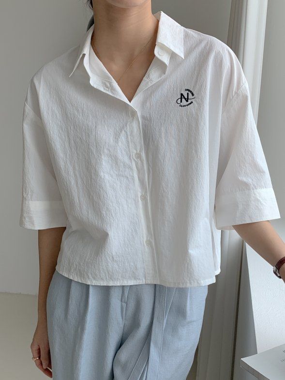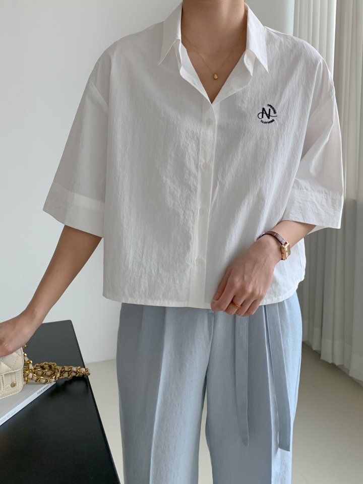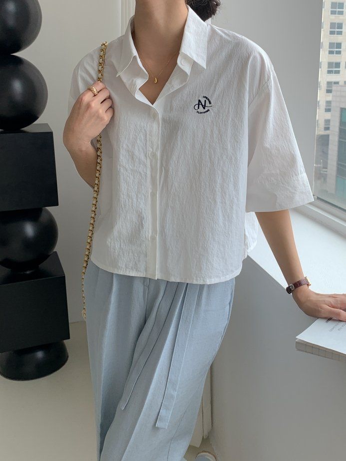 アント임刺繍半袖 カラー追加 新作 後ろ身頃ダブルスリット 夏シャツ アウター兼用 ゆったりフィット 国内生産