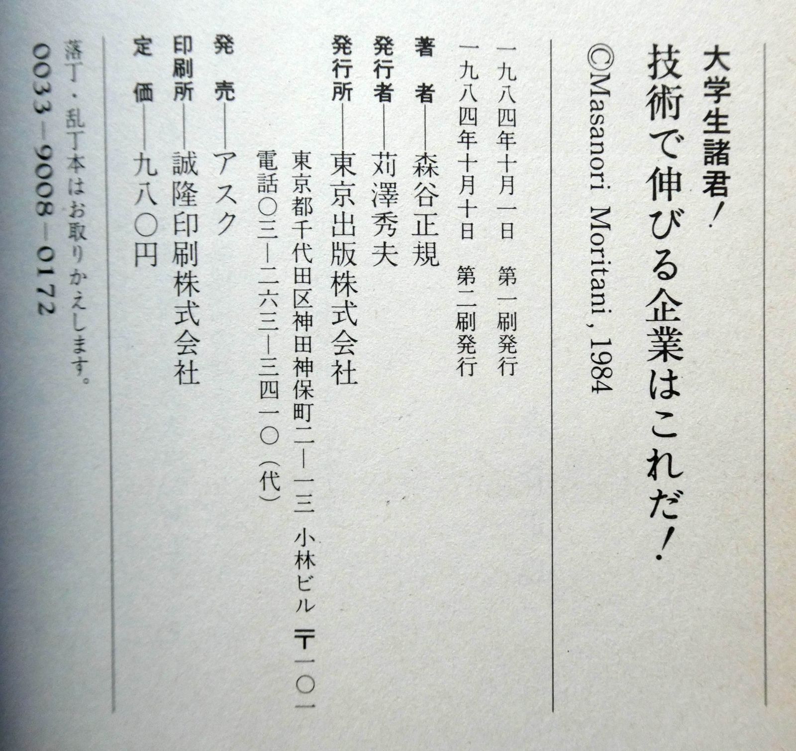 【中古】大学生諸君!技術で伸びる企業はこれだ! 森谷正規 東京出版