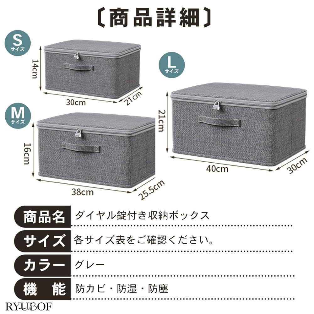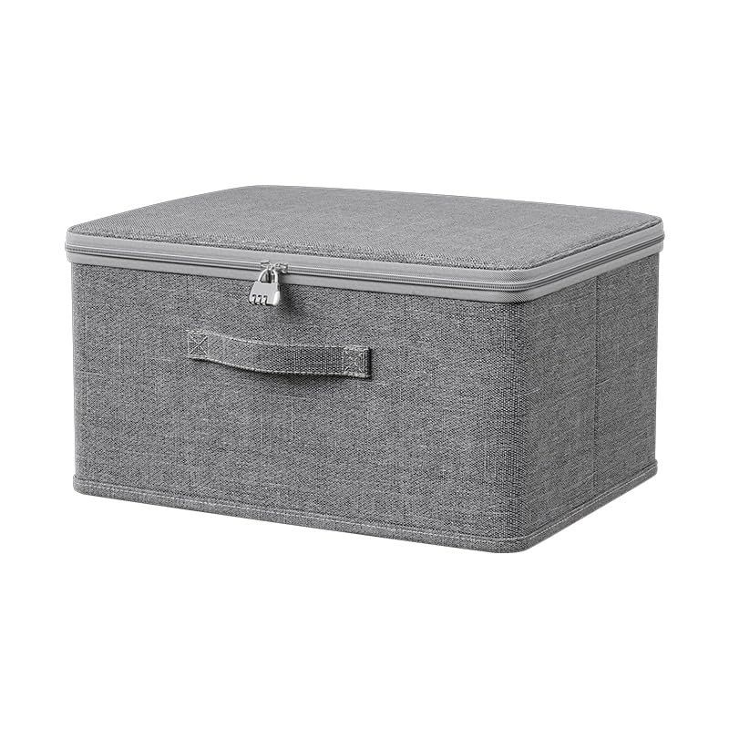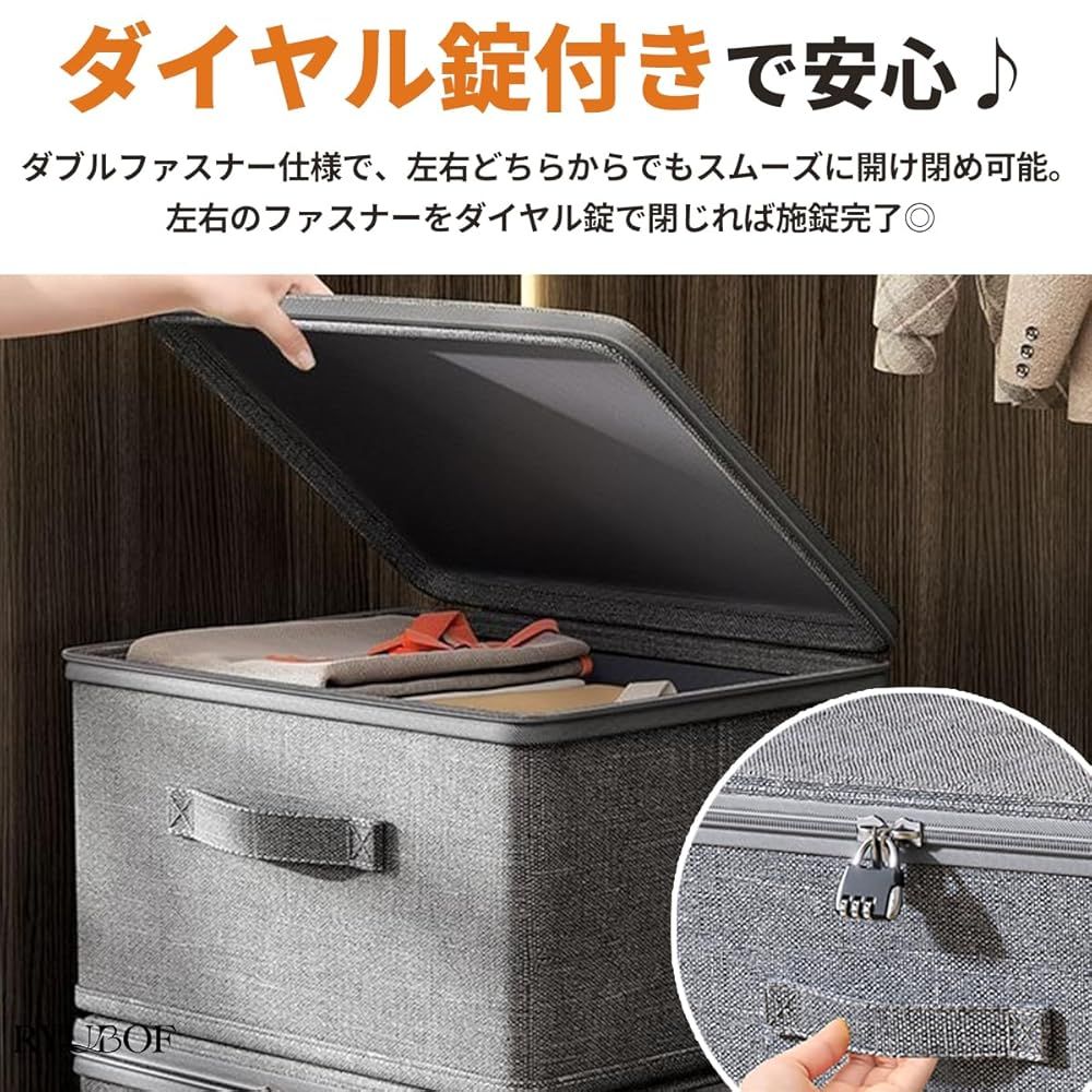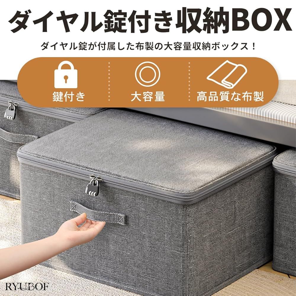 RYUBOF 収納ボックス 大容量 鍵付き ダイヤル錠 ふた付き 衣類収納 折りたたみ 取っ手付き おしゃれ 布製 ファスナー付き (M)