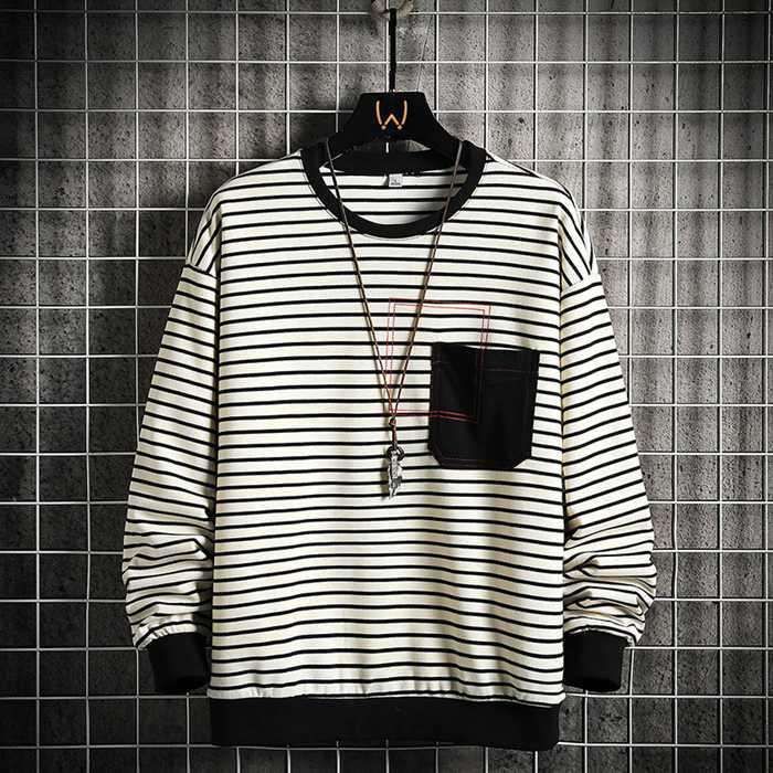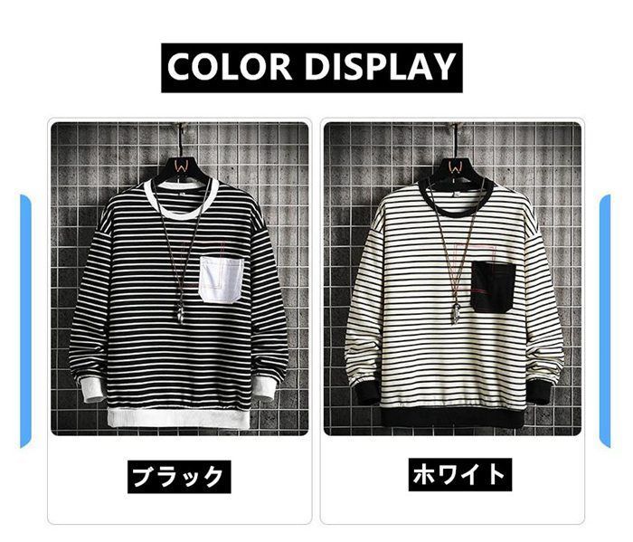 Tシャツ メンズ 長袖 トップス 長袖Tシャツ ボーダー柄 クルーネック カジュアル 装飾用ポケット シンプル おしゃれ 大人 誕生日 プレゼント ギフト 彼氏 シャツ 普段着 hjfs156