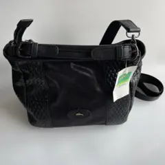 『OSAM』ブラック編み込みデザインショルダーバッグ