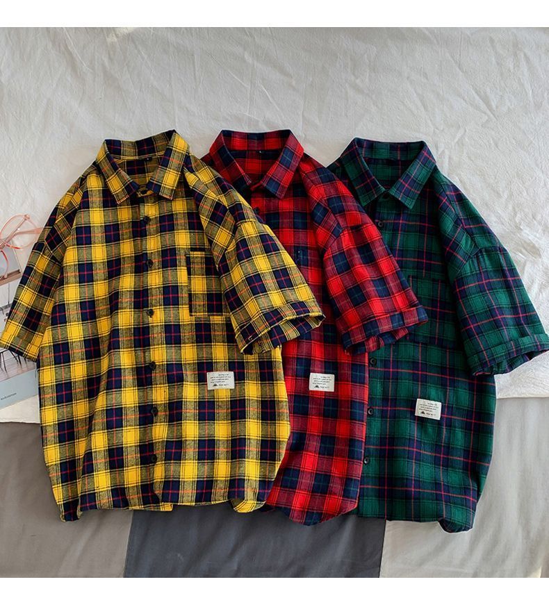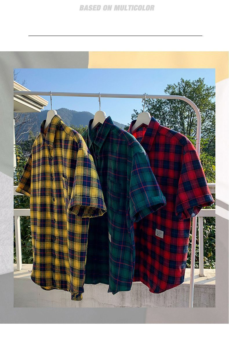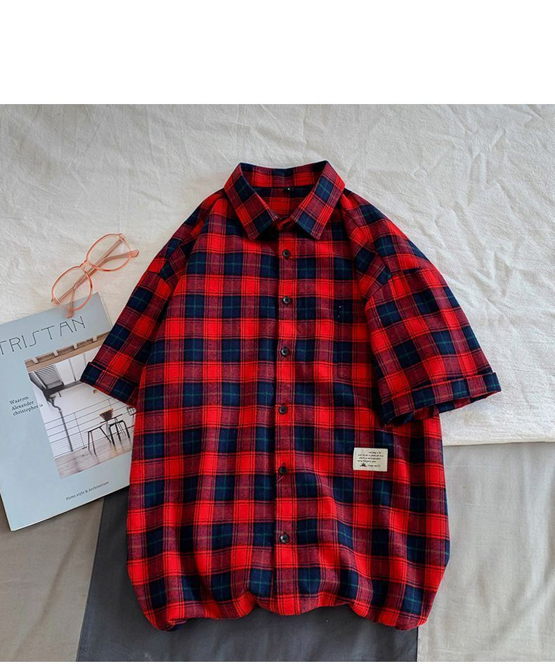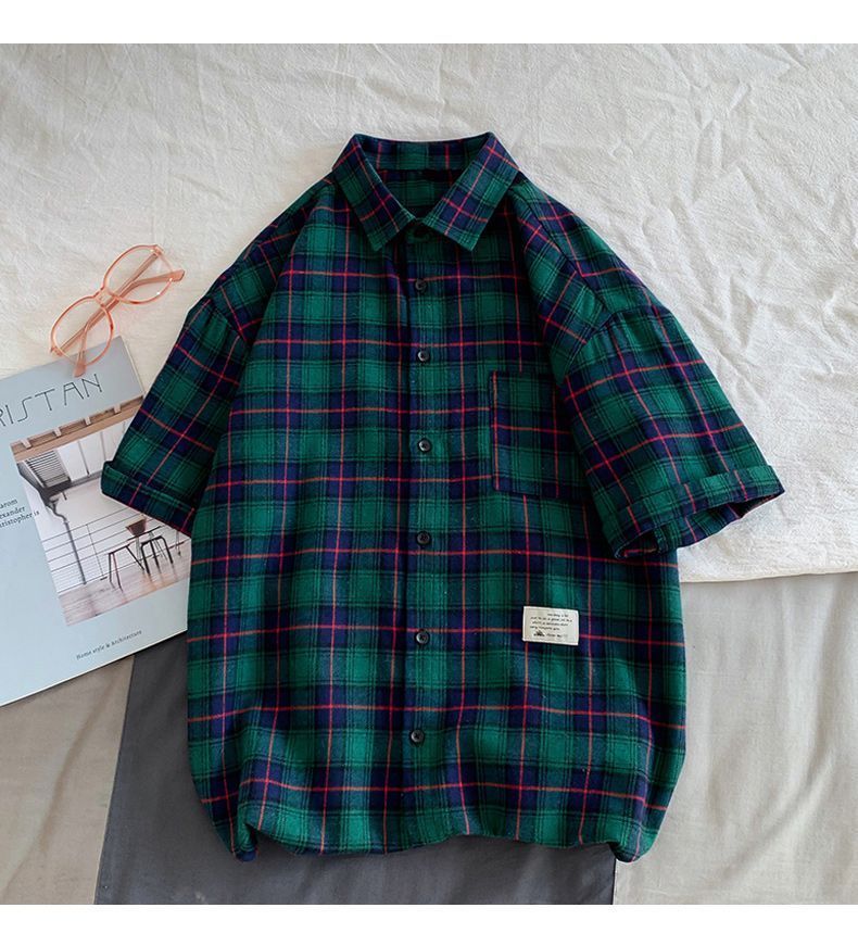 チェックシャツトップスメンズオシャレメンズファッションqメンズシャツカジュアルシャツ夏開襟シャツカジュアル通学半袖シャツ