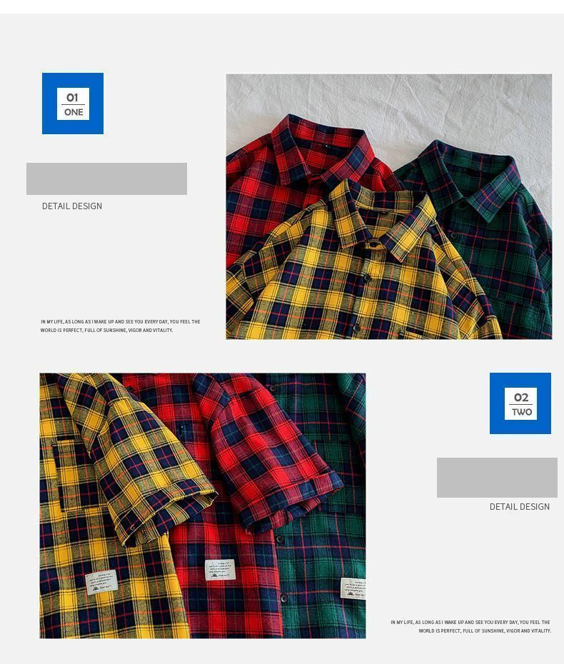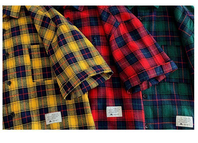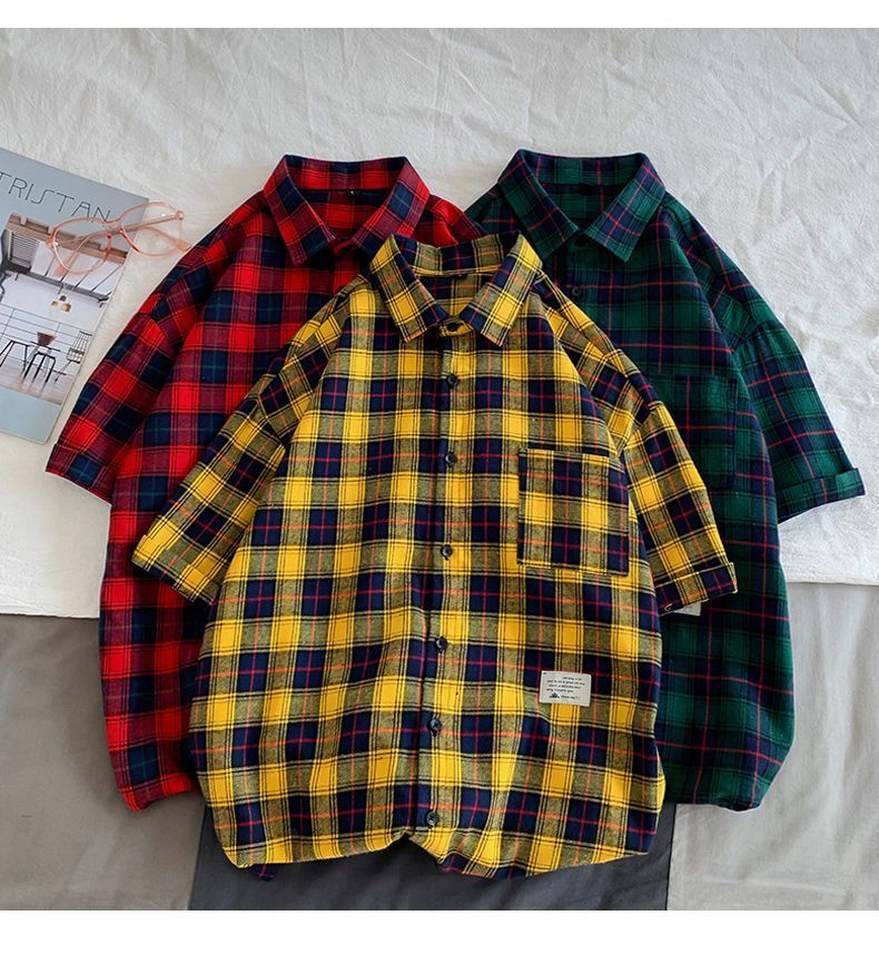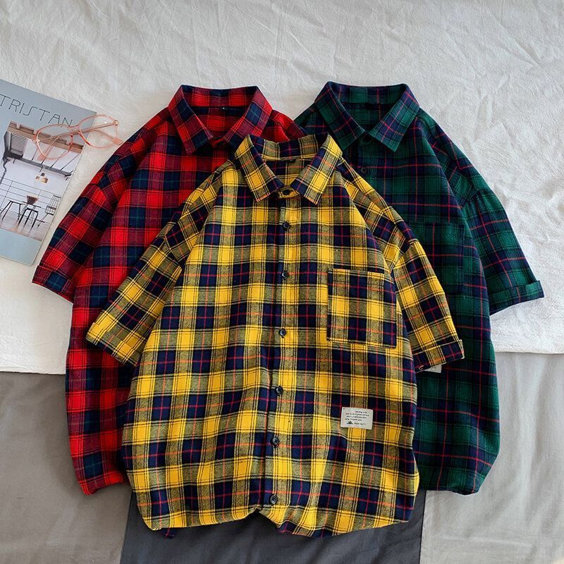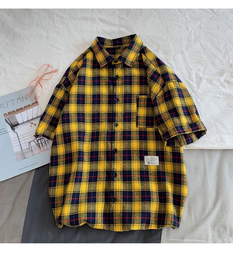チェックシャツトップスメンズオシャレメンズファッションqメンズシャツカジュアルシャツ夏開襟シャツカジュアル通学半袖シャツ