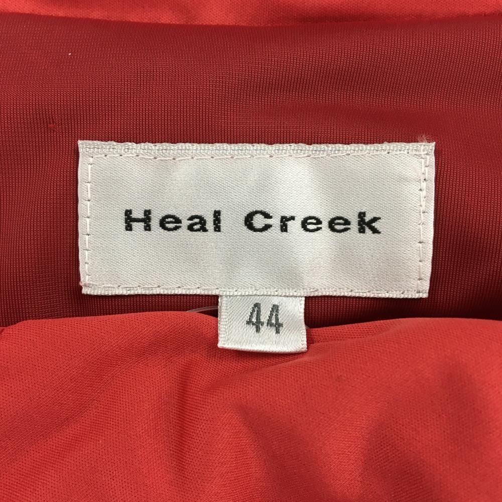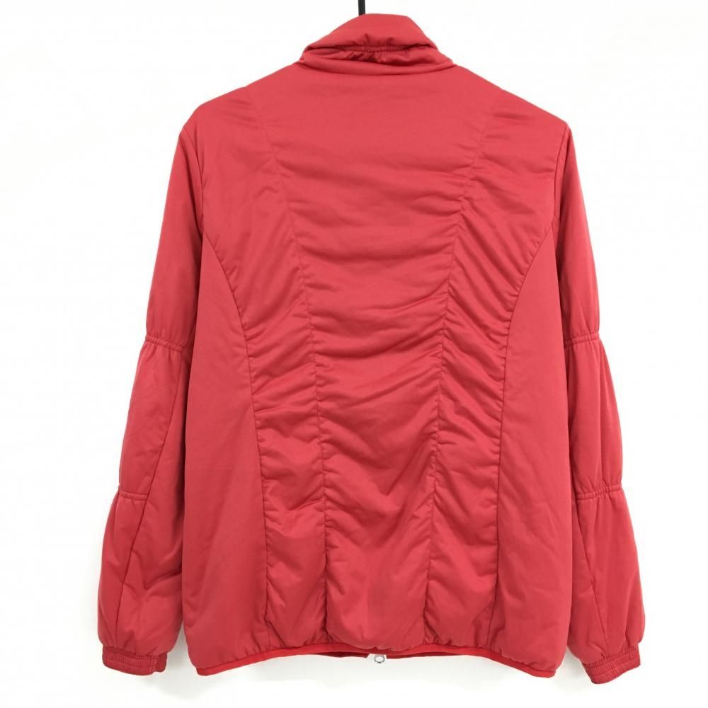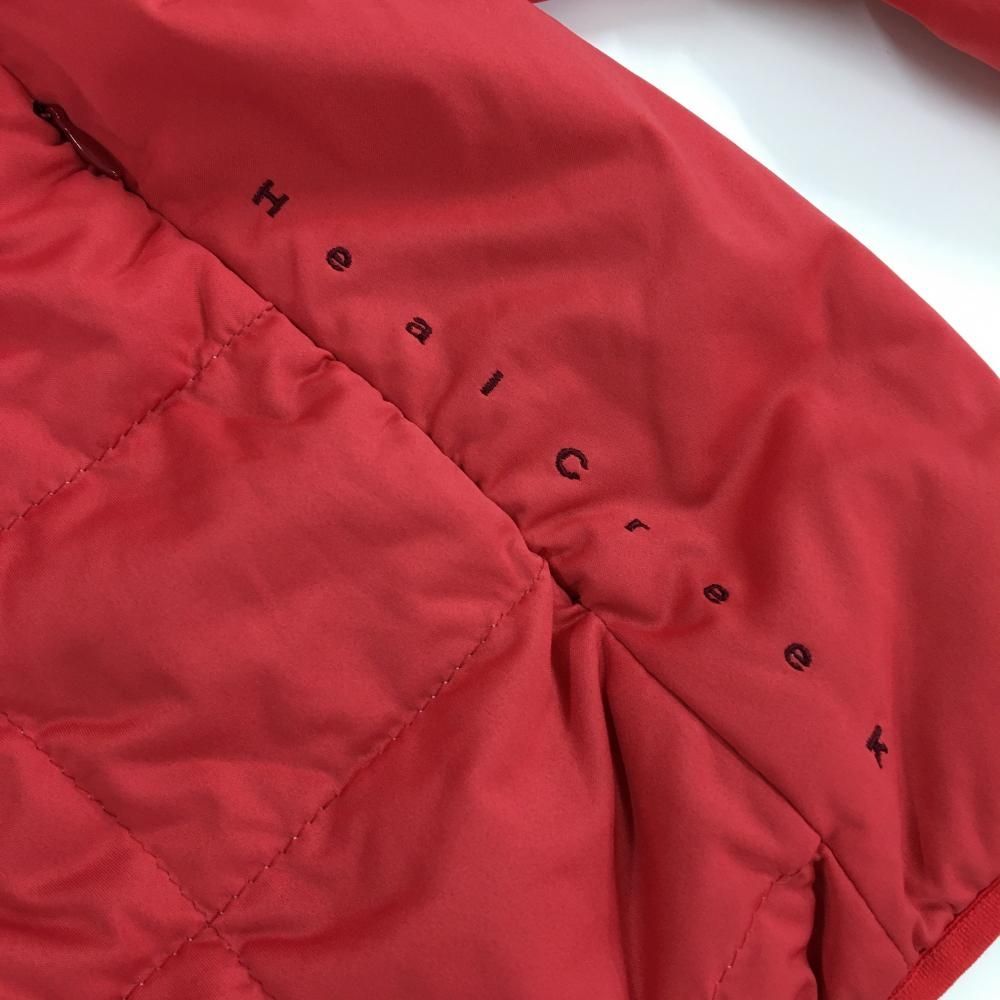 【超美品】ヒールクリーク 中綿ジャケット レッド ダブルジップ ロゴ刺しゅう ジップポケット レディース 44(XL) ゴルフウェア Heal Creek