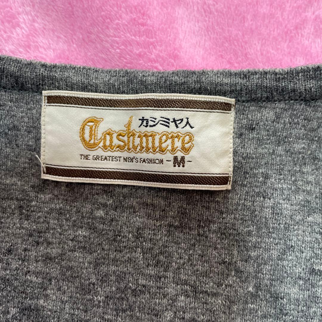 グレー ニットベスト Vネック ボタン付きカシミヤ混