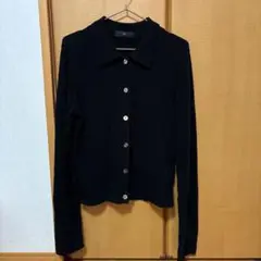 4°C ブラック ボタンカーディガン 長袖 ニット