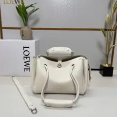 ホワイト ハンドル付きショルダーバッグ