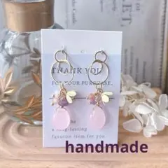 ビーズ ハンドメイドピアス 3点 セット ブルー ピンク アンティーク