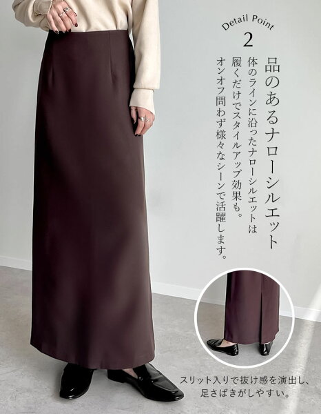 カジュアルからきれいめまで、幅広いスタイリングにぴったりなナロースカートです。