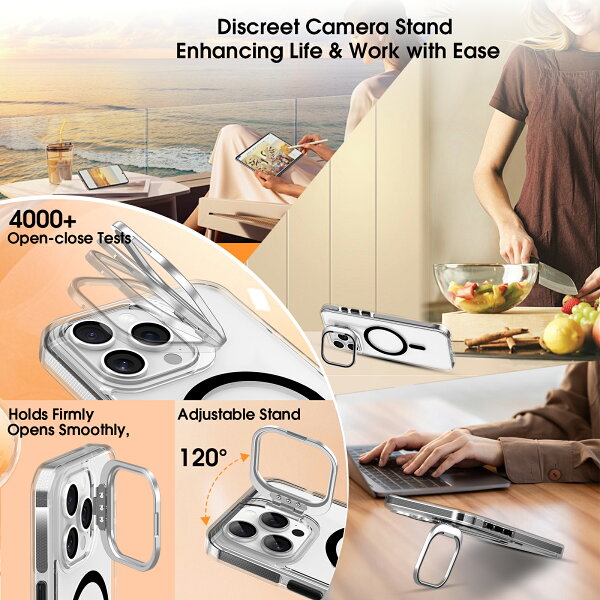 【米軍規格・Magsafe対応】iPhone16 ・15・14 ・13・12用 ケース 半透明 マグネット搭載 耐衝撃 耐久性 全面保護 黄ばみなし ストラップホール付き イフォンiPhone11 12 13 14 15 マグセーフ対応 スタンド付き マグネット搭載 スタンド一体型半透明 背面クリア