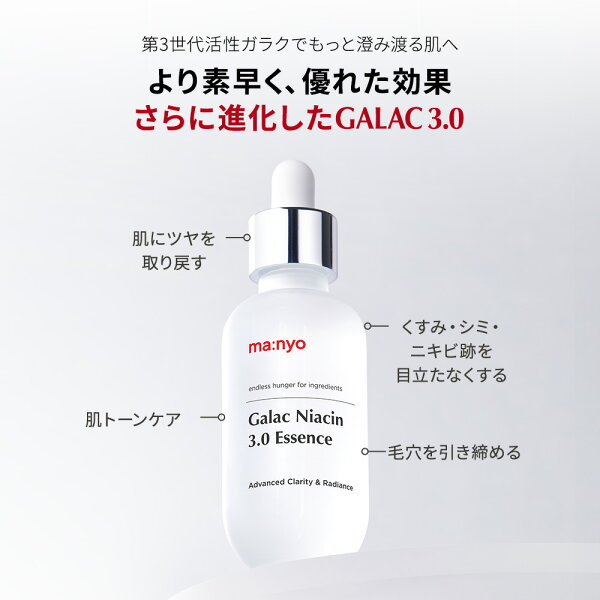 \20%OFF+送料無料/【2+1】ガラクナイアシン3.0エッセンス【manyo公式】美白美容液 導入美容液 エッセンス 美容液 肌キメ 韓国コスメ 美肌 透明感 毛穴 肌トーン マニョ manyo【送料無料】