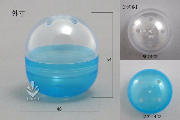 | サイズ / カラー | 48mm空カプセル。赤青黄緑の4色アソートです。 全体的に中身が透けて見えます |
