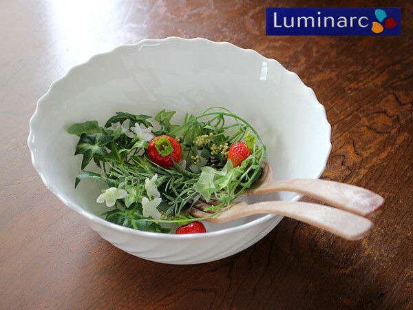 【アウトレット】【強化ガラス】Luminarc トリアノン サラダボウル 24cm / ガラス食器 強化ガラス 白い食器 サラダボウル リュミナルク