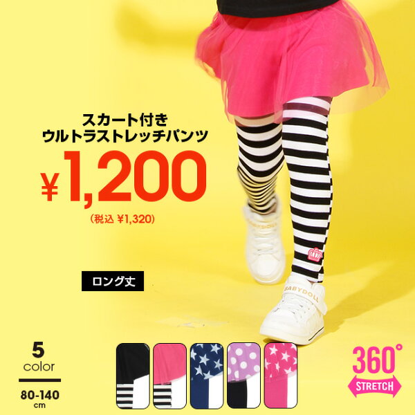 【アウトレットSALE】 ウルトラストレッチ チュール付スカッツ ロング丈/7分丈 8824K チュールスカート付きストレッチパンツ 子供服 女の子 ベビー キッズ BABYDOLL ベビードール 【品番入れ替えセール】
