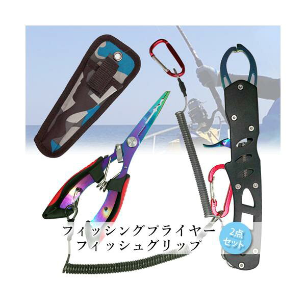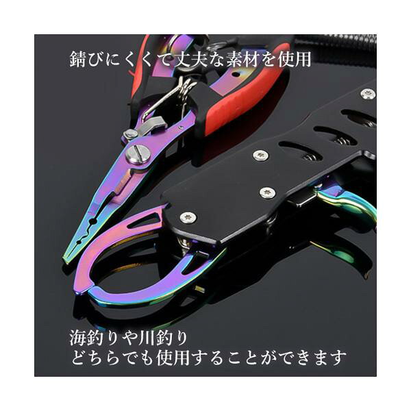 フィッシングプライヤー フィッシュグリップ セット 釣りグッズ 人間工学デザイン 錆びにくい ストラップ付 ロック付き (管理S) 送料無料 【SK19127】