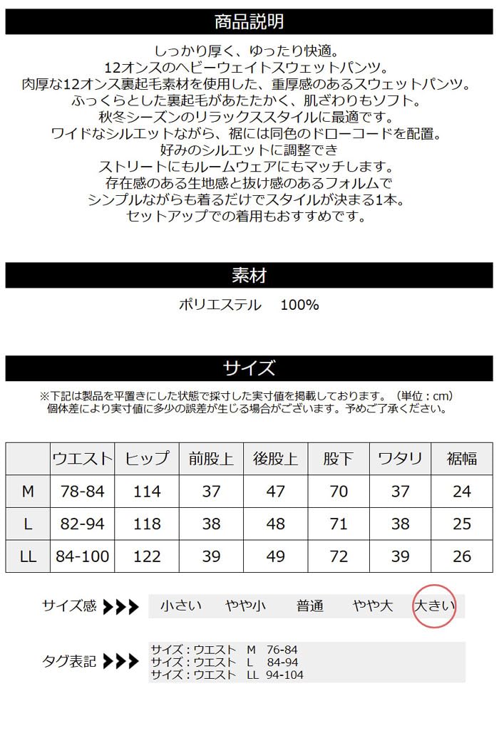 | スタイル: | スウェットパンツ |